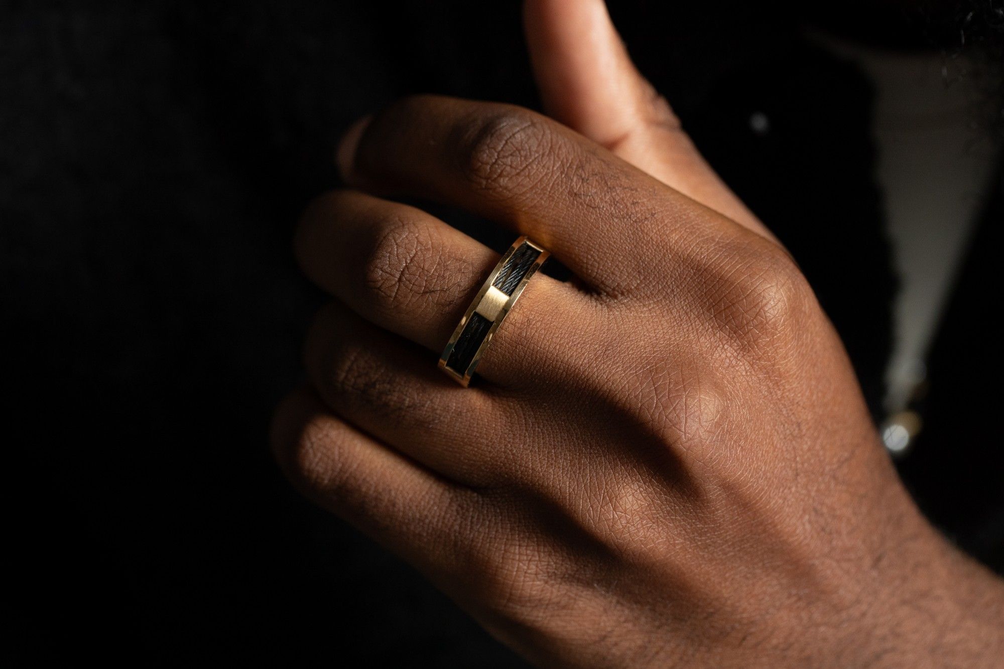 Acier doré et cables tressés noirs