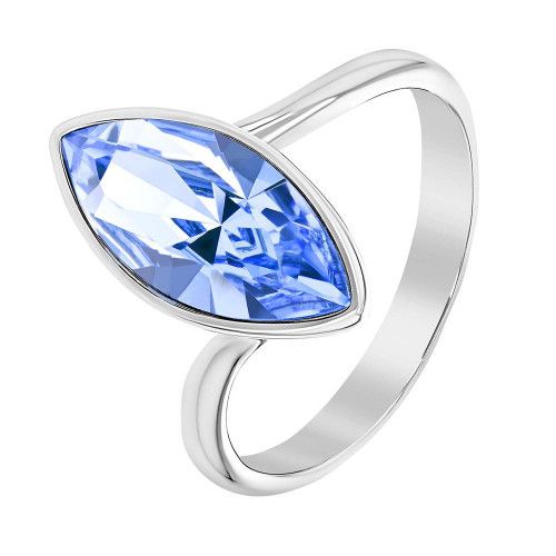 Argent rhodié 925/000, cristal bleu 15 x 7 mm