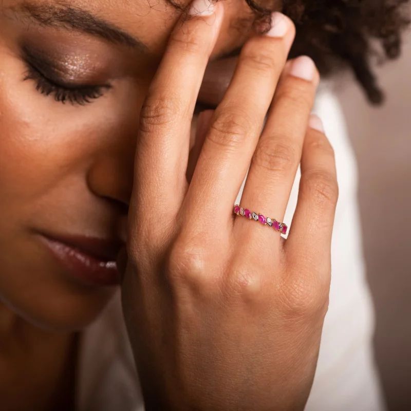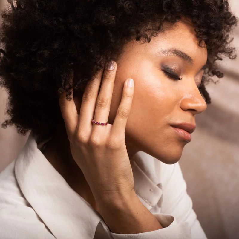 Bague Or jaune et Rubis navettes