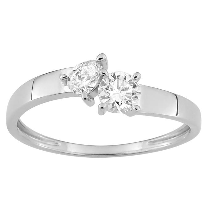 Bague or blanc, diamants synthétique 0.40 ct