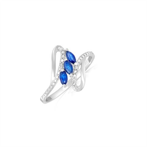 Bague Or Blanc 375/000, 3 saphirs et diamants 0.02 carat