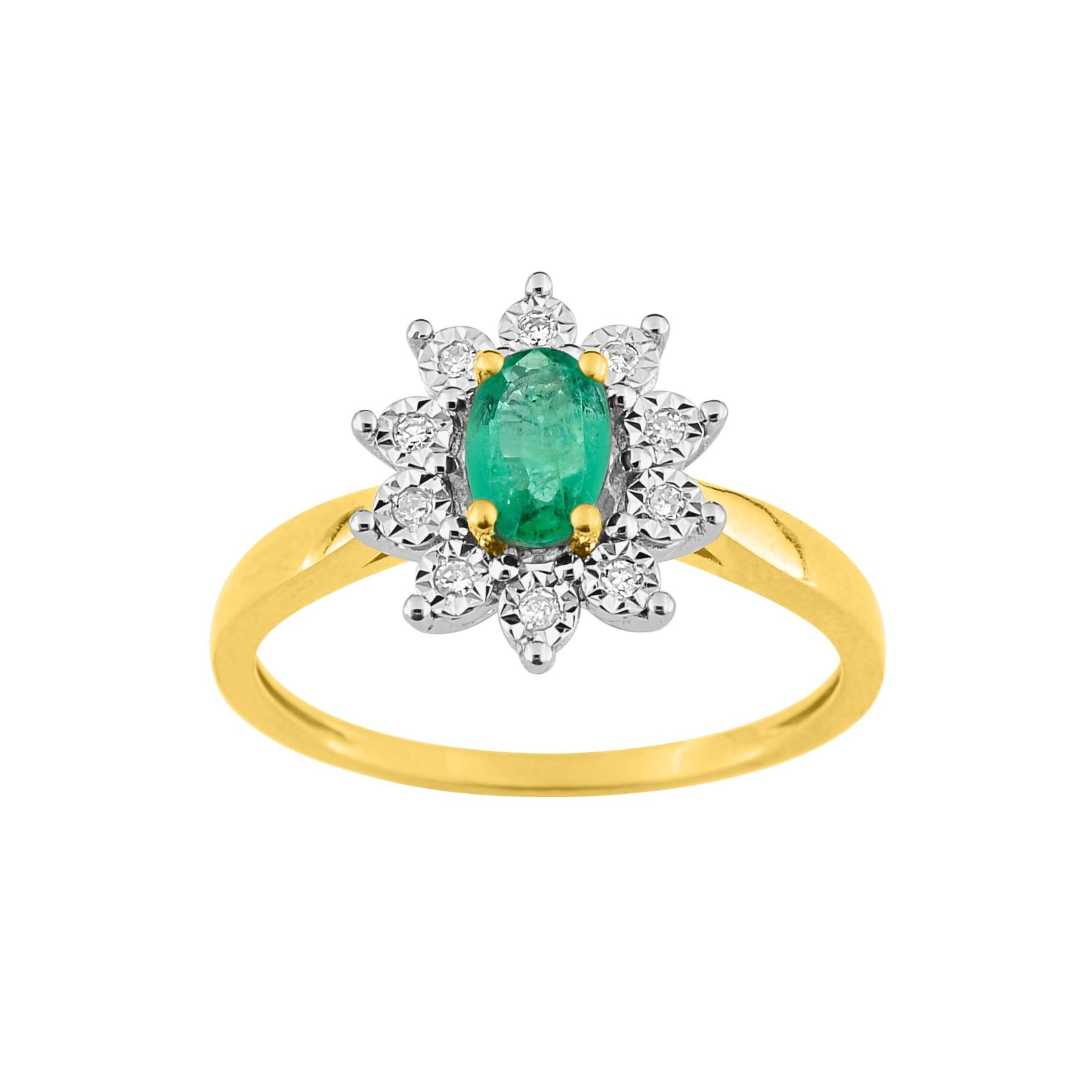 Or jaune750/000 et rhodiage, Emeraude et Diamants 0.06 ct