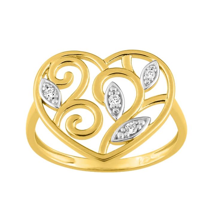 Or jaune 375/000, motif Coeur serti d’oxydes de zirconiums