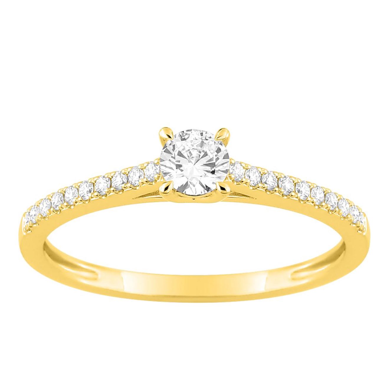 Or jaune 375/000, diamant synthétique central 0.20 carat + 0.12 carat