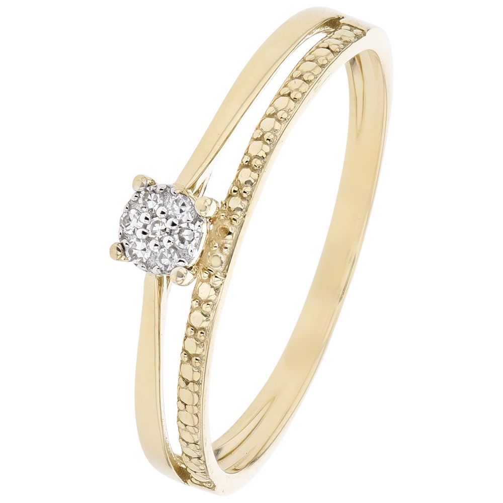 Or jaune 375/000, solitaire pavage 7 diamants , 0.035 carat