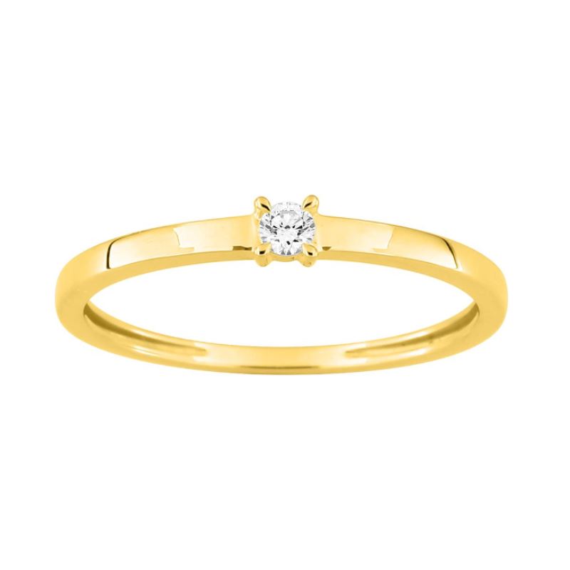 Or jaune 375/000, diamant synthétique F Vs, 0.05 carat soit environ 2 mm