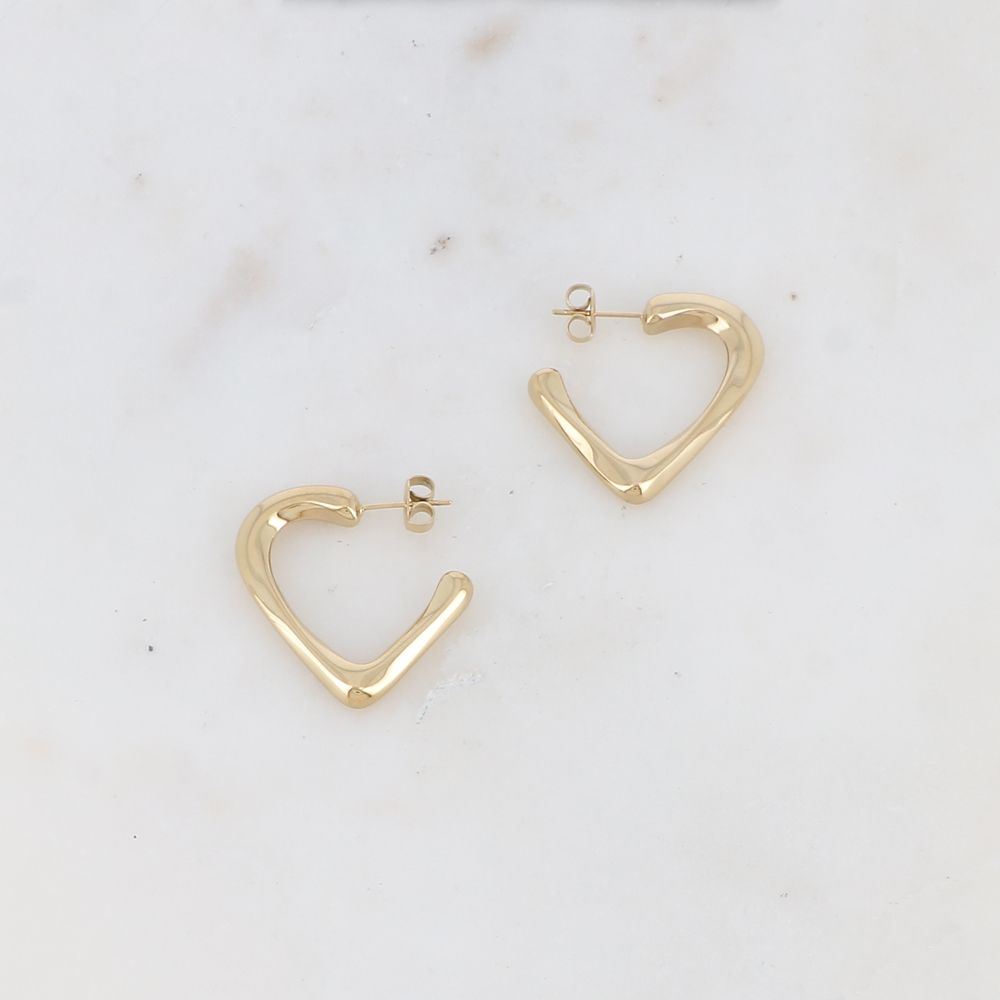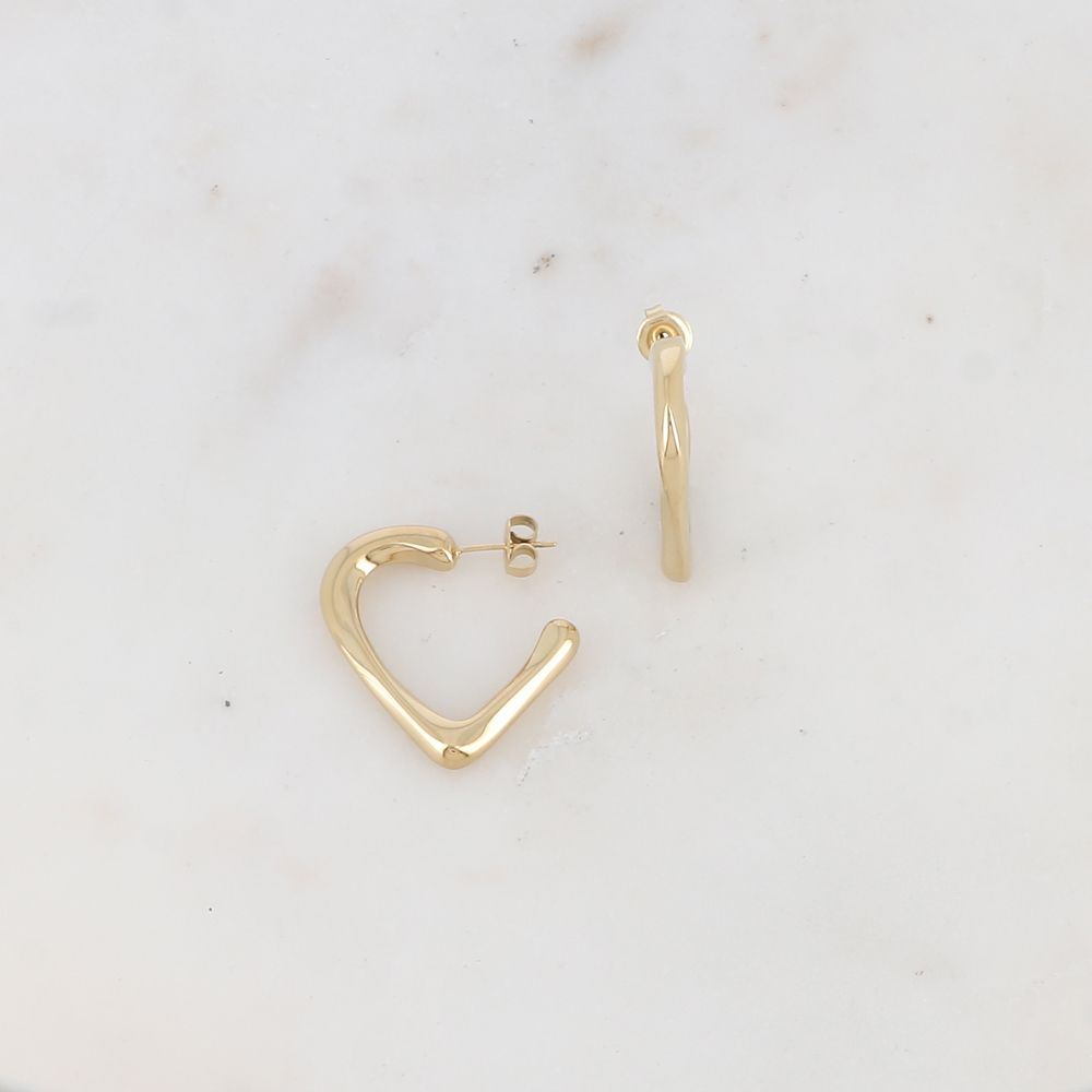 Boucles d’oreilles de type créoles forme cœur à puce. Fermoir papillon.