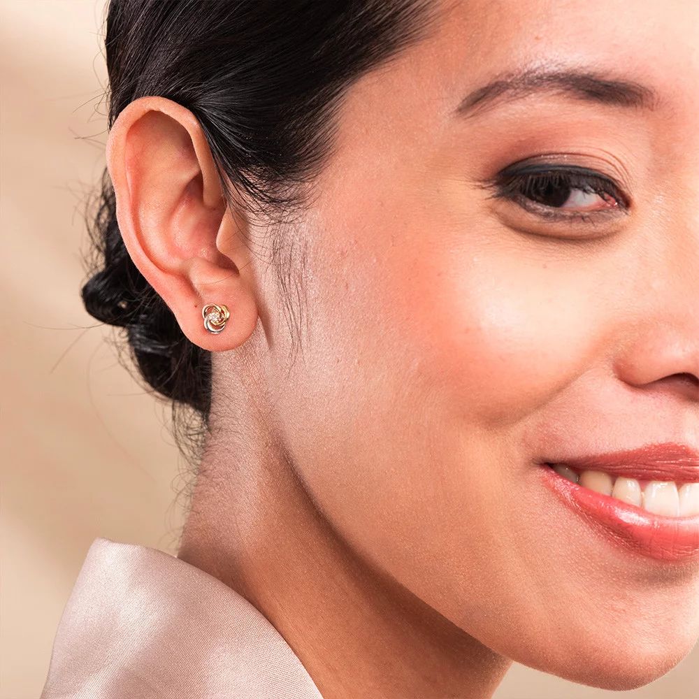 Boucles d’Oreilles 3 Ors et Zirconiums, Ø 8 mm