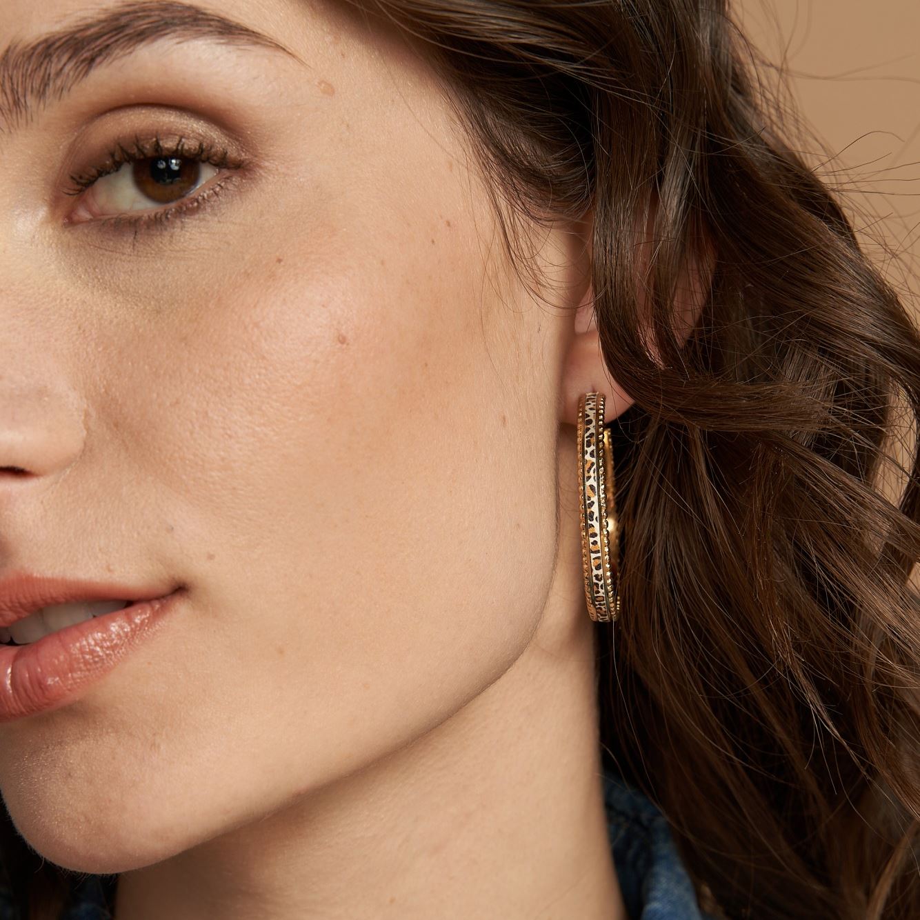 Acier PVD doré, Cuir haute qualité « style léopard »