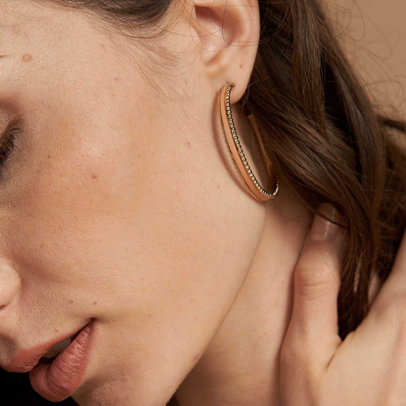 Acier PVD doré, Cuir haute qualité « orange saumoné »
