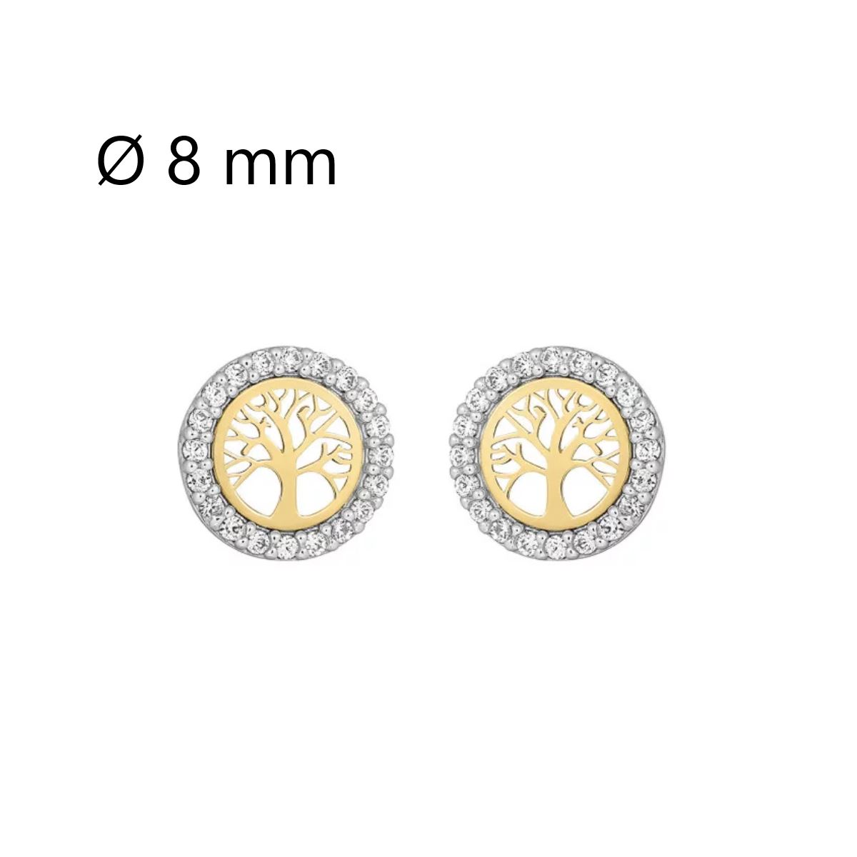 Boucles d’oreilles, Or jaune et zirconiums, Arbre de Vie