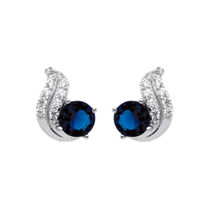 Argent rhodié 925/000, virgule verre bleu entourage oxydes de zirconiums