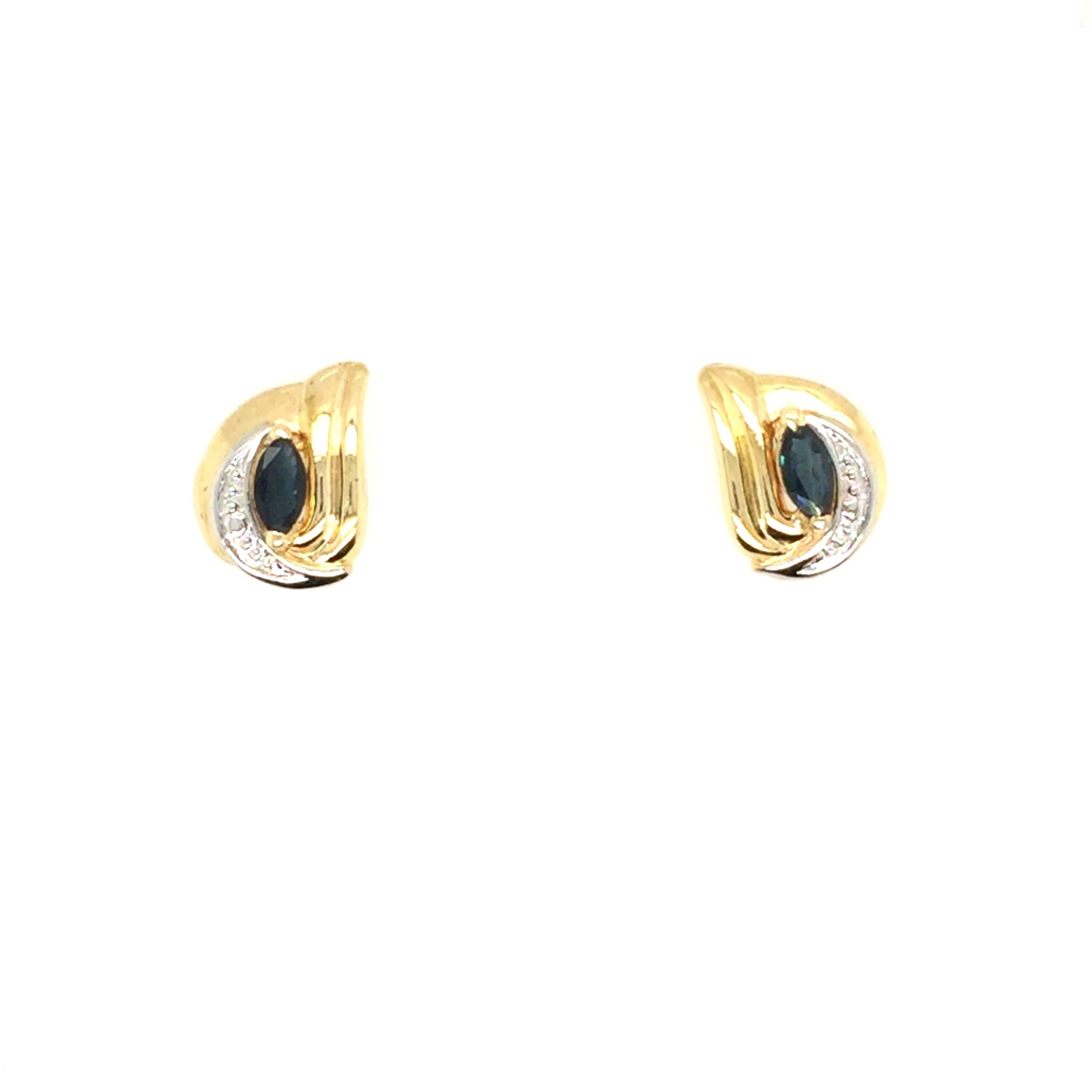 Boucles d’Oreilles Bicolore, Or 375/000, Saphirs. hauteur 13 mm