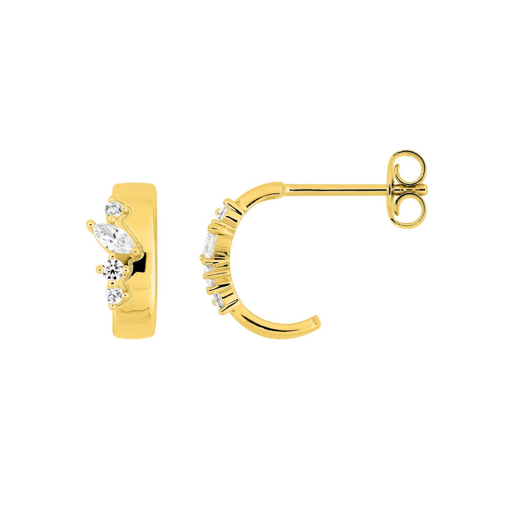 Boucles d’oreilles demi créoles, plaqué or et zirconiums 4 x 11 mm