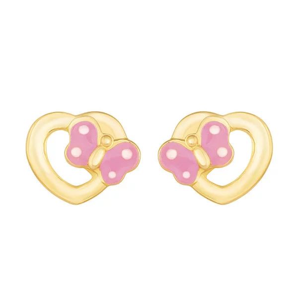 Or jaune 750/000, papillons en émail rose