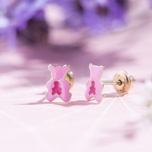 Boucles d’Oreilles Enfant, Ourson rose 7 x 4 mm