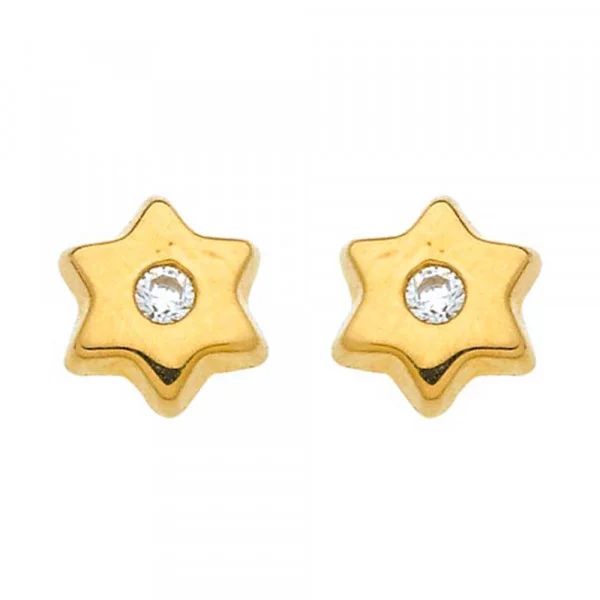 Boucles d’oreilles enfants, Or jaune et zirconiums, motif étoiles 5/6 mm