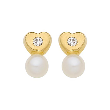 Boucles d’oreilles coeur avec oxyde de zirconium, perle de culture d’eau douce, or jaune 375/000