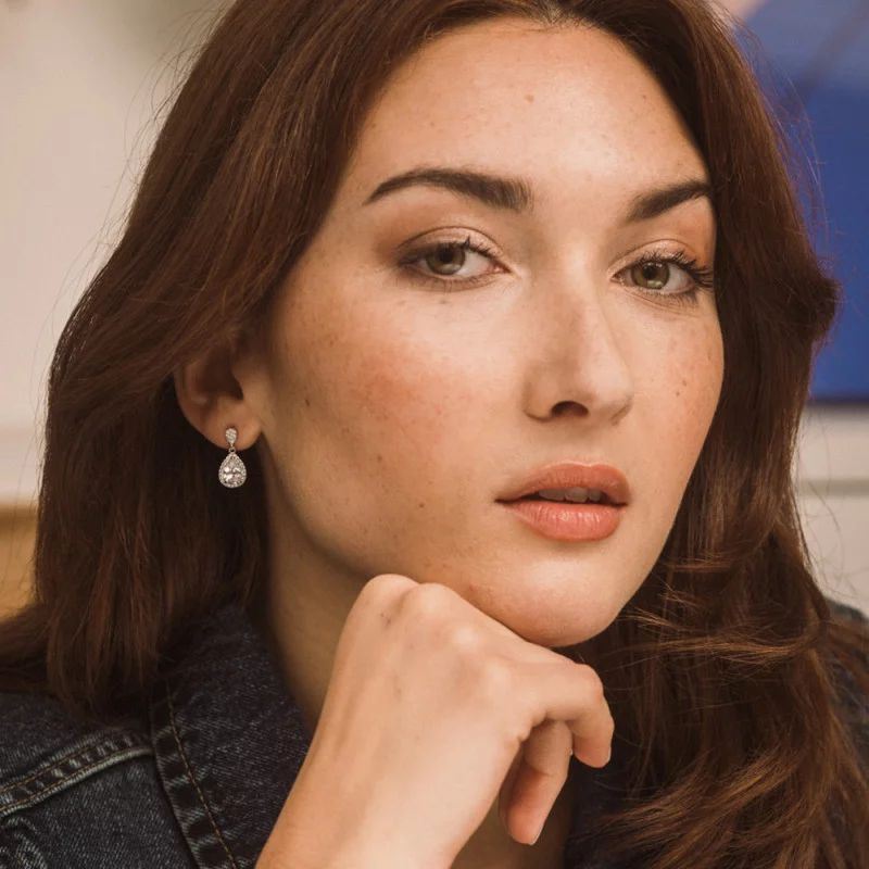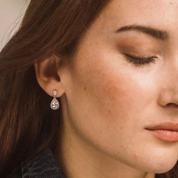 Argent rhodié 925/000, pendant forme goutte, oxydes de zirconiums