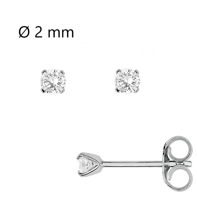 Or blanc 750/000 , puces 4 griffes oxydes 2 mm