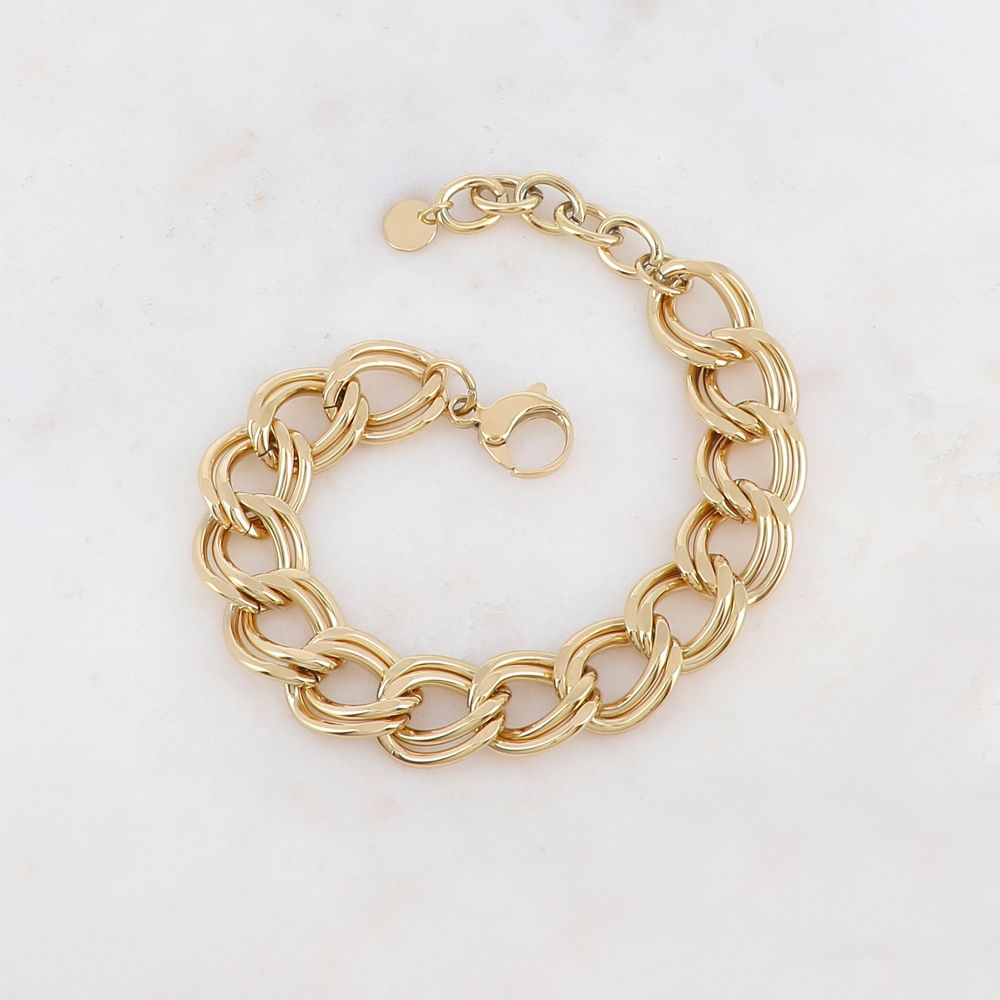 Bracelet acier doré, double mailles 14 mm