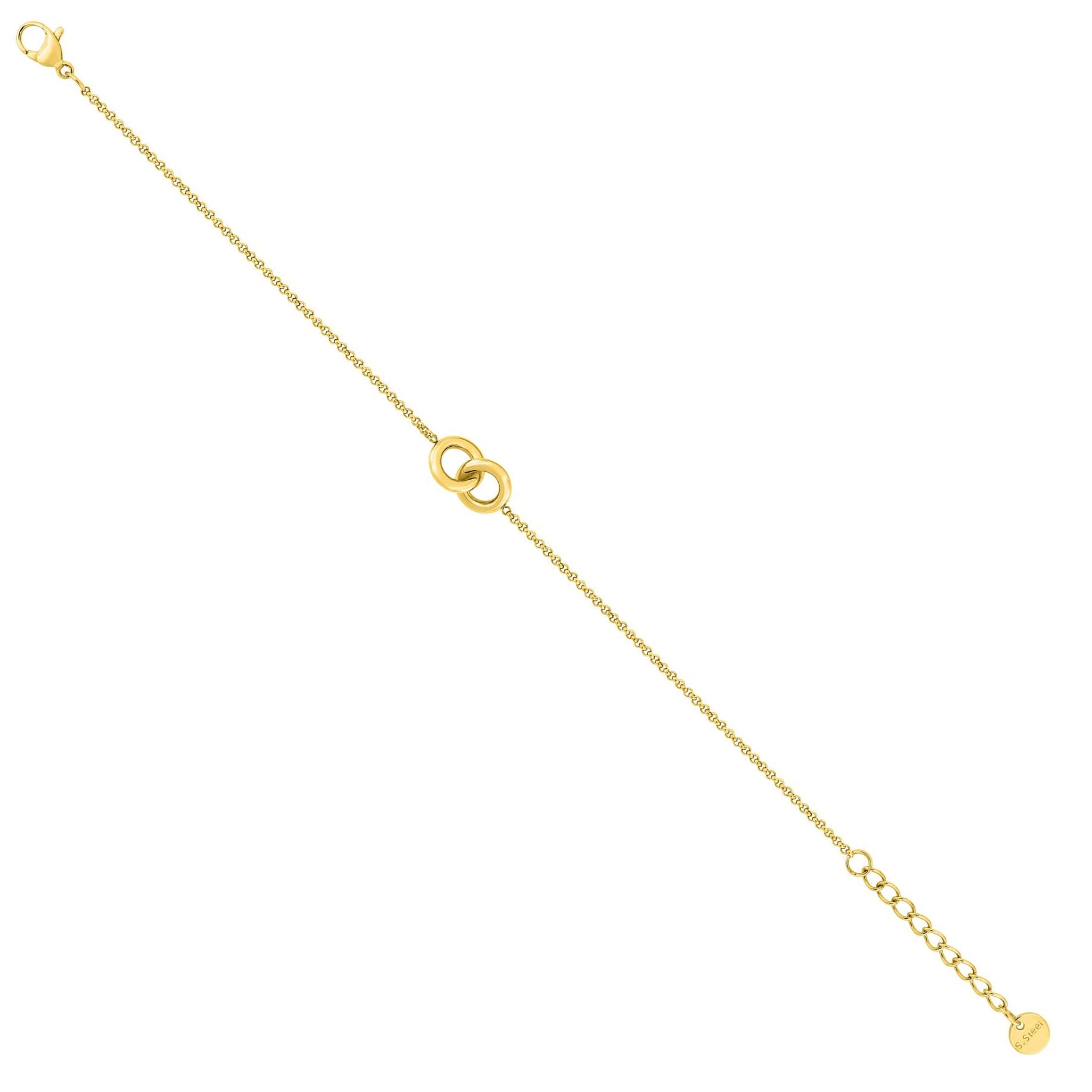 Bracelet acier double cercles 8 mm entrelacés, acier doré