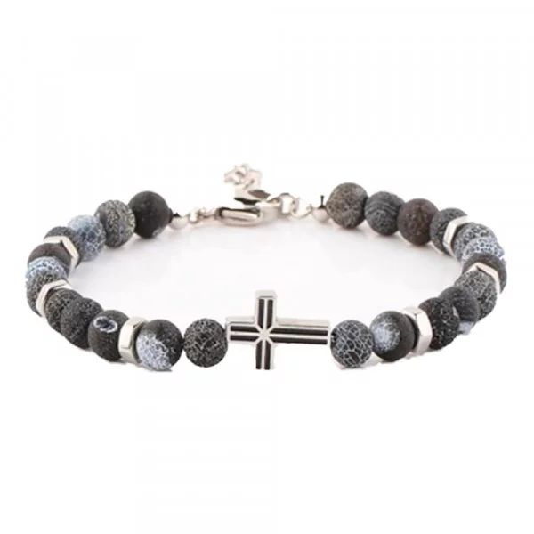 Bracelet Agate et croix acier, Harvey Stone