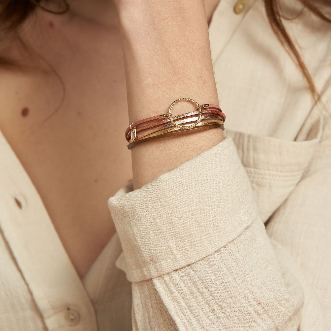 Bracelet multiliens en cuir haut de gamme, teintes cuivrées, rosées, nacrées