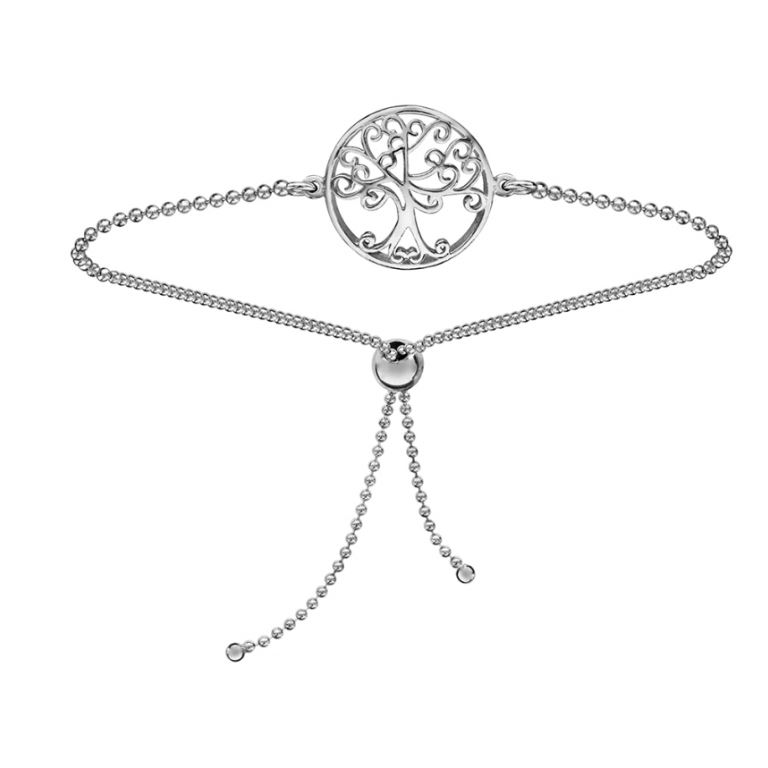 Bracelet Argent, médaille Arbre de vie Ø 15 mm, fermoir coulissant ajustable