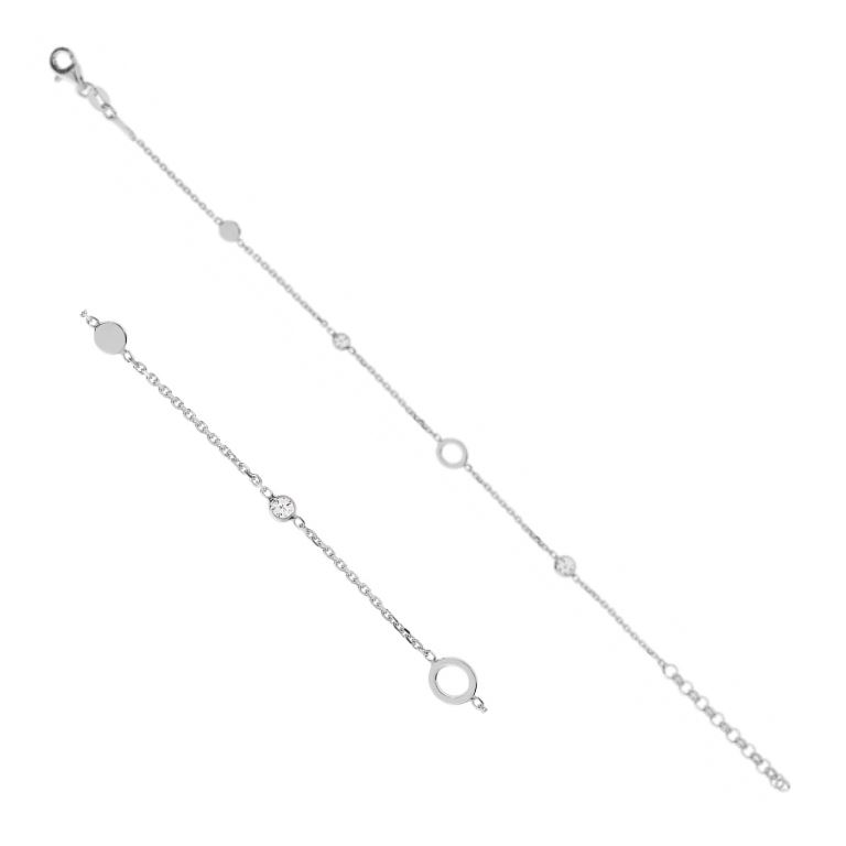 Cercle argent 4 mm et disque argent 5 mm, 2 zirconiums sertis clos