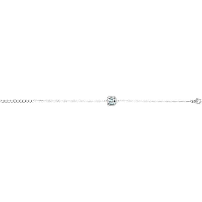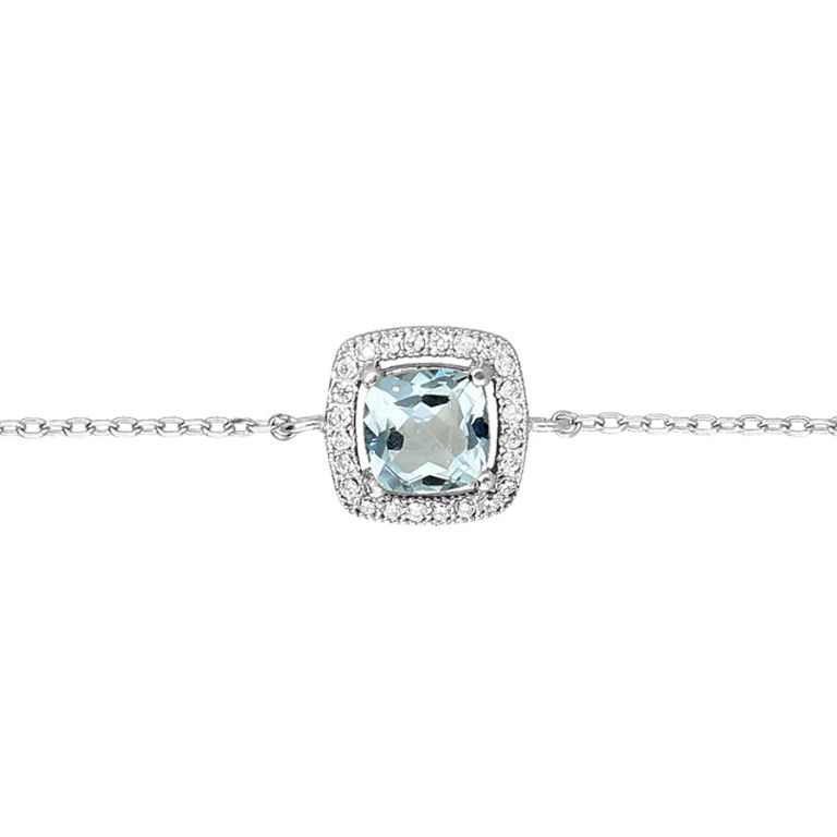 Bracelet Argent 925/000 ml, chaine maille forçat 19,5 cm réglable à 16,5 cm, topaze Bleue entourées d’oxydes de zirconiums.