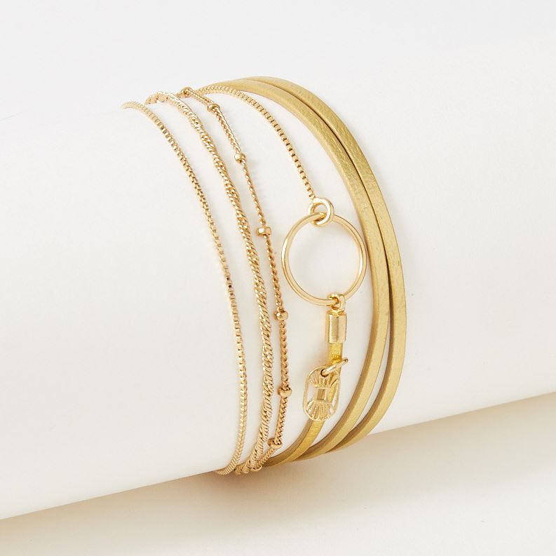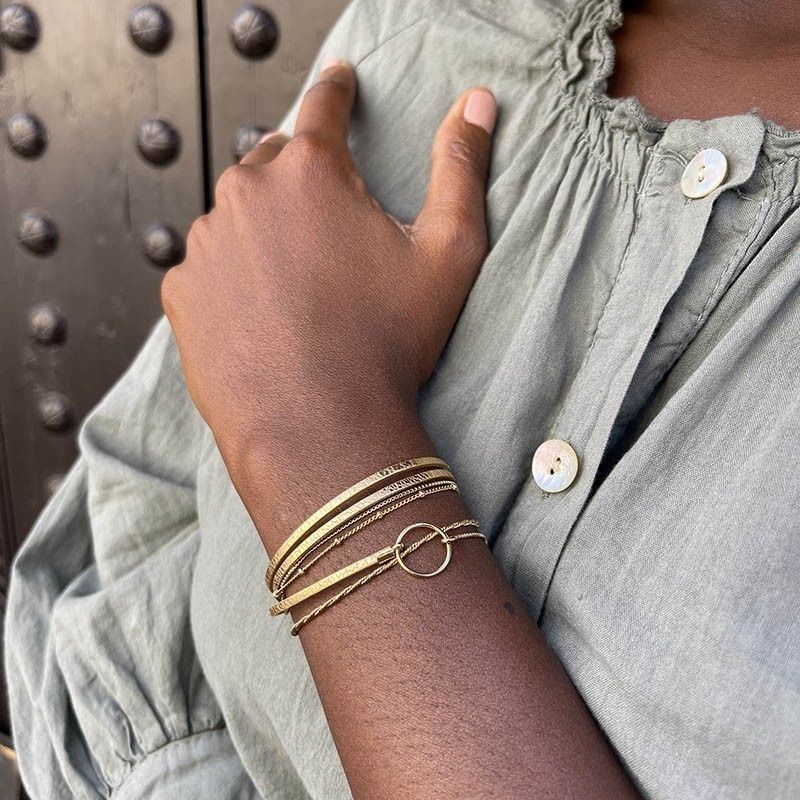 Acier doré, fermoir aimanté, cuir doré métalisé