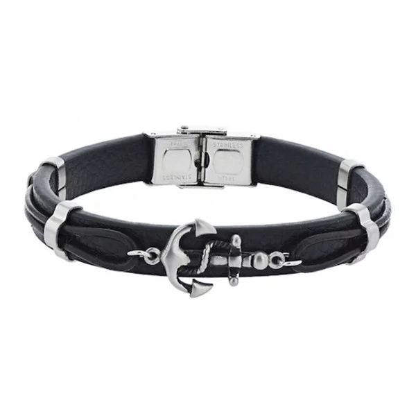 Cuir noir et acier, Motif Ancre entouré de cordage, 20 cm, possibilité de raccourcir !