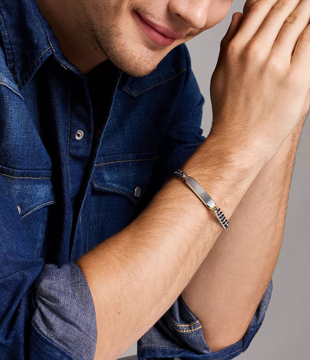 Bracelet Gourmette Homme, Acier bicolore, Fossil