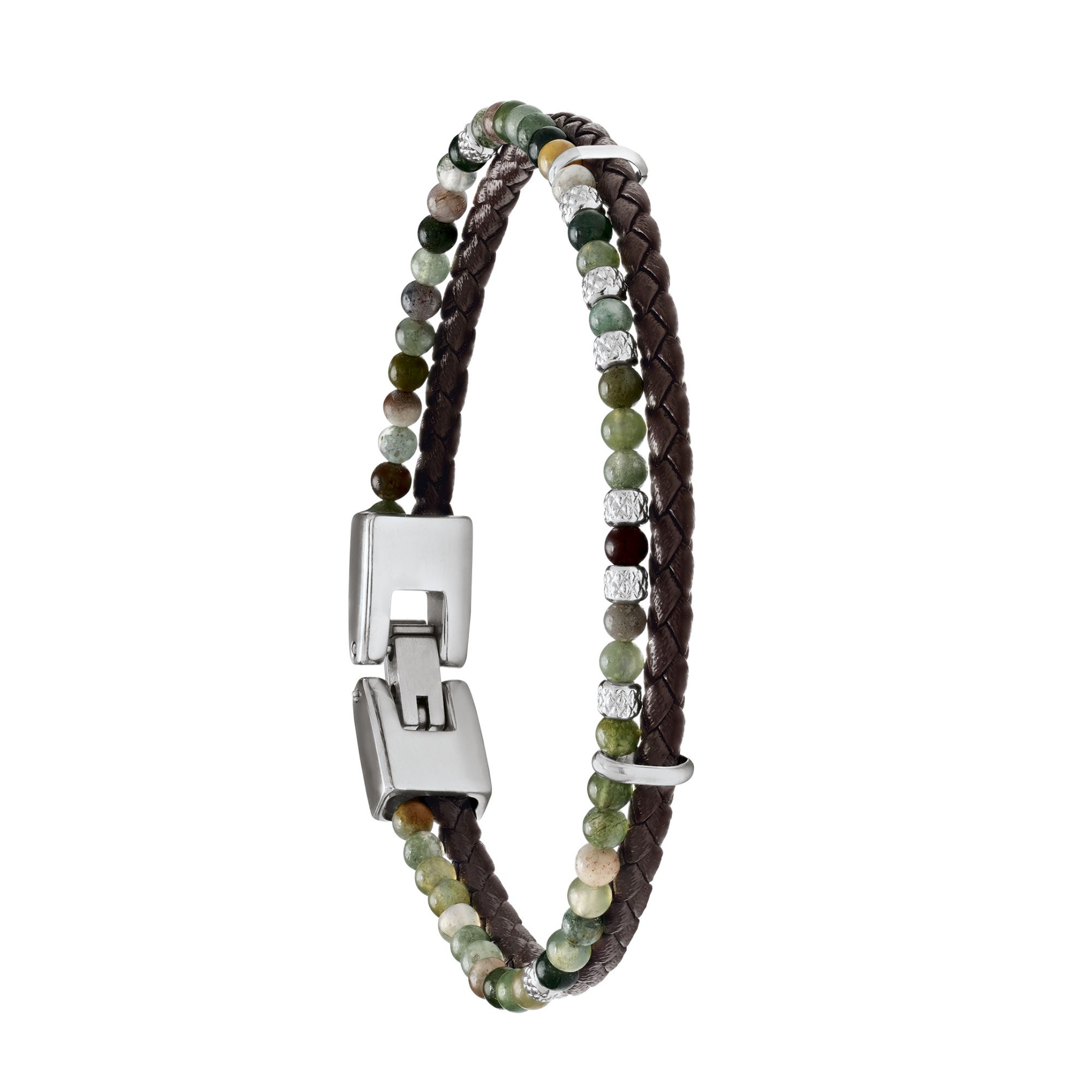 Largeur 8.5 mm, acier inoxydable, agate (majoritairement verte)