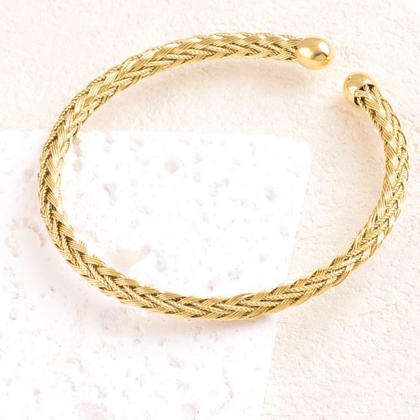 Bracelet jonc, acier doré tressé Ø 6 mm