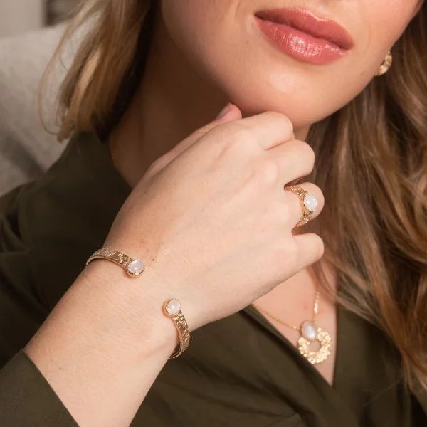 Bracelet jonc ouvert plaqué or et pierres de Lune, Anamila