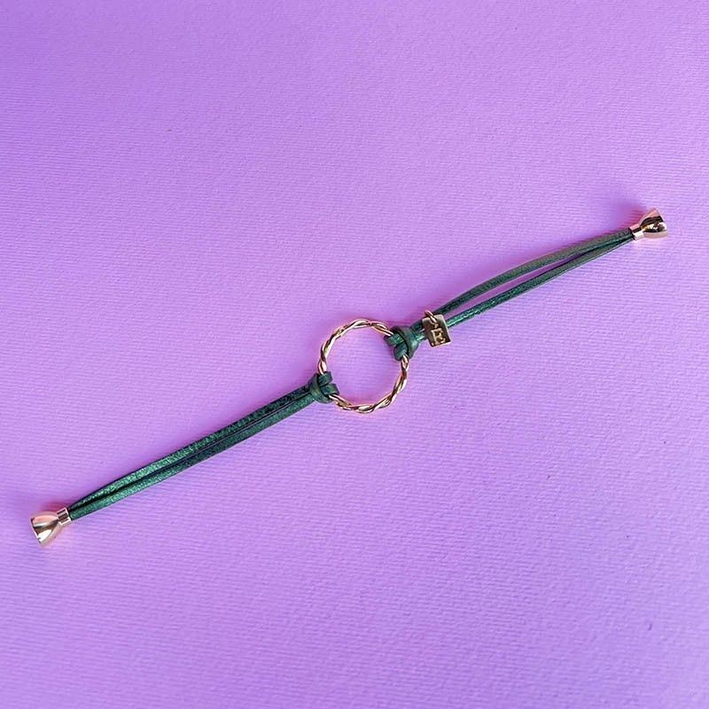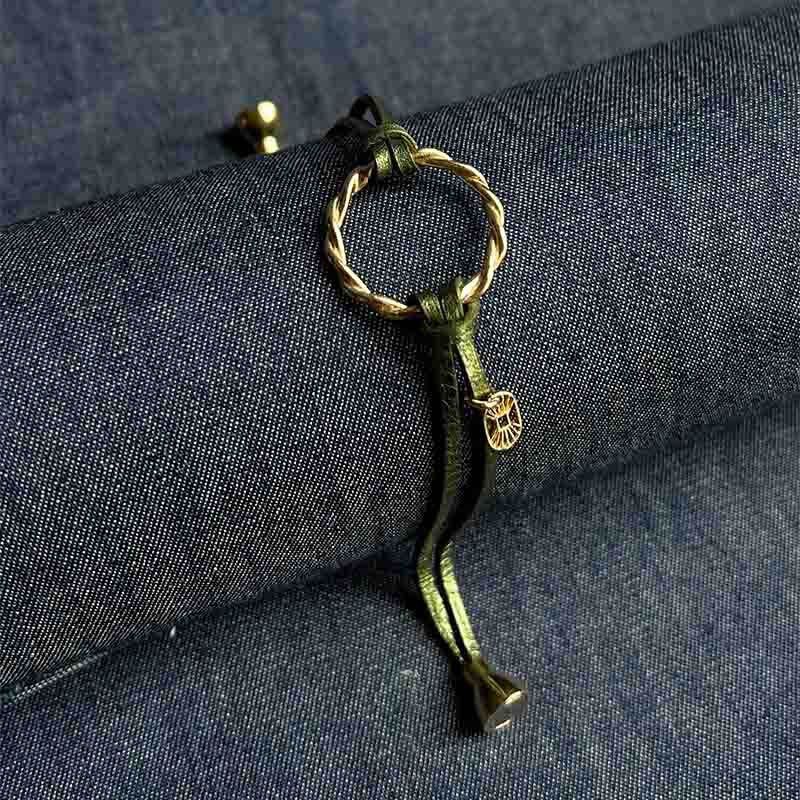 Double lien de cuir véritable et d’un anneau torsadé.