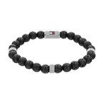 Pierre de lave ø 8 mm, éléments en acier, sur fil textile élastique 21 cm, taille unique