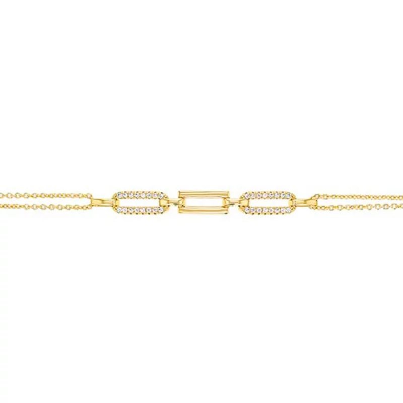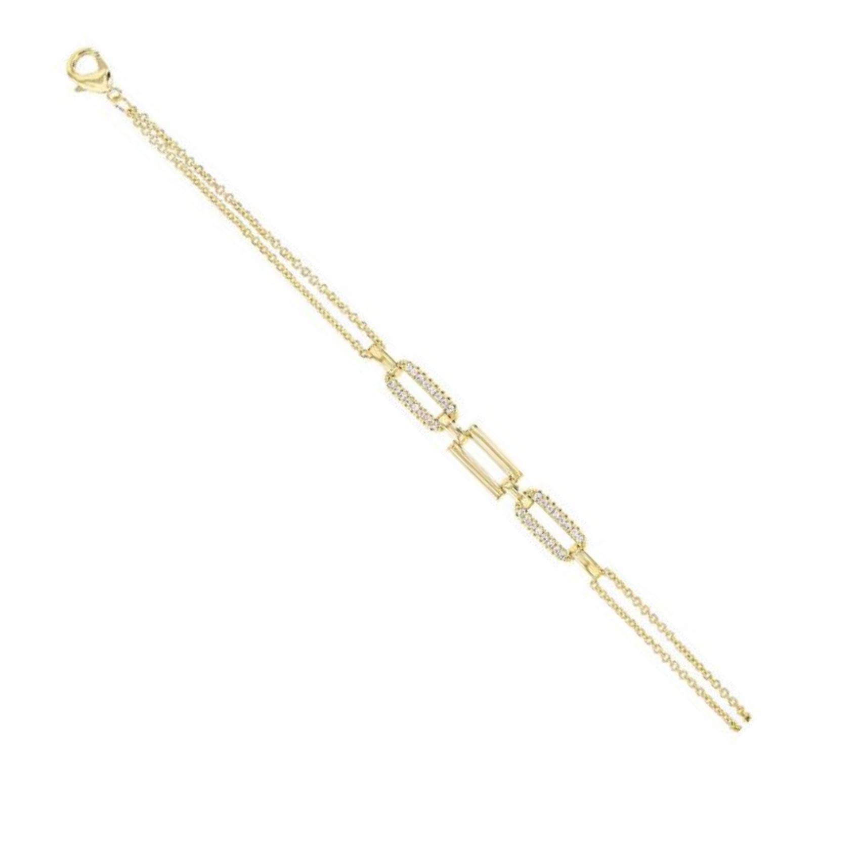 Bracelet double chainette, rectangles arrondis sertis d’oxydes de zirconiums