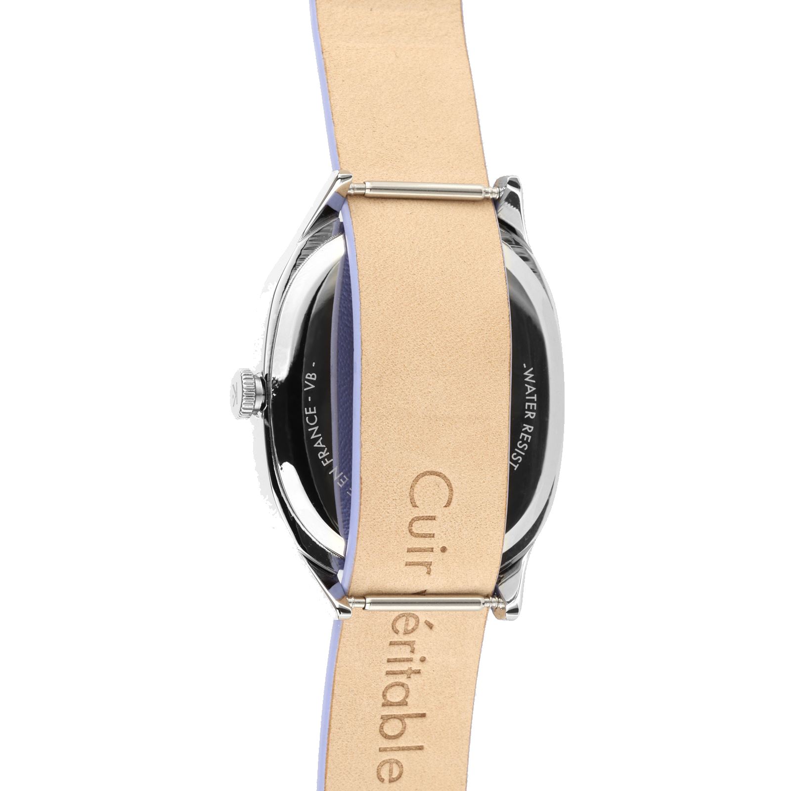 Boitier laiton chromé 28/32 mm, cuir mauve + 2ème bracelet nato cuir argenté métalisé