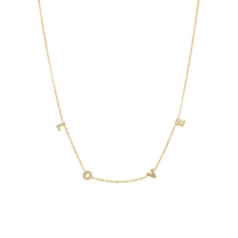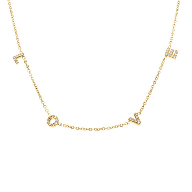 Collier acier doré et zirconiums, « LOVE »