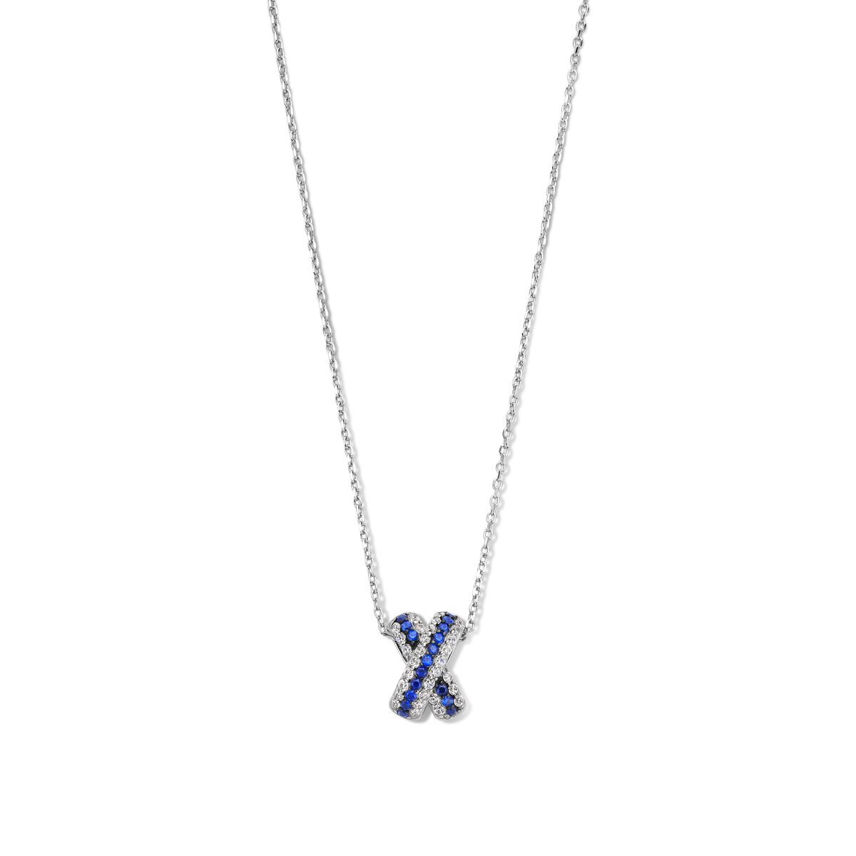 Argent rhodié 925/000 Longeur 45 cm réglable au 42 ou 40 cm Oxydes de zirconiums bleus REF: N3U64