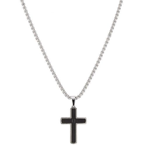 Acier inoxydable, PVD noir brossé et zirconium noir au recto de la croix