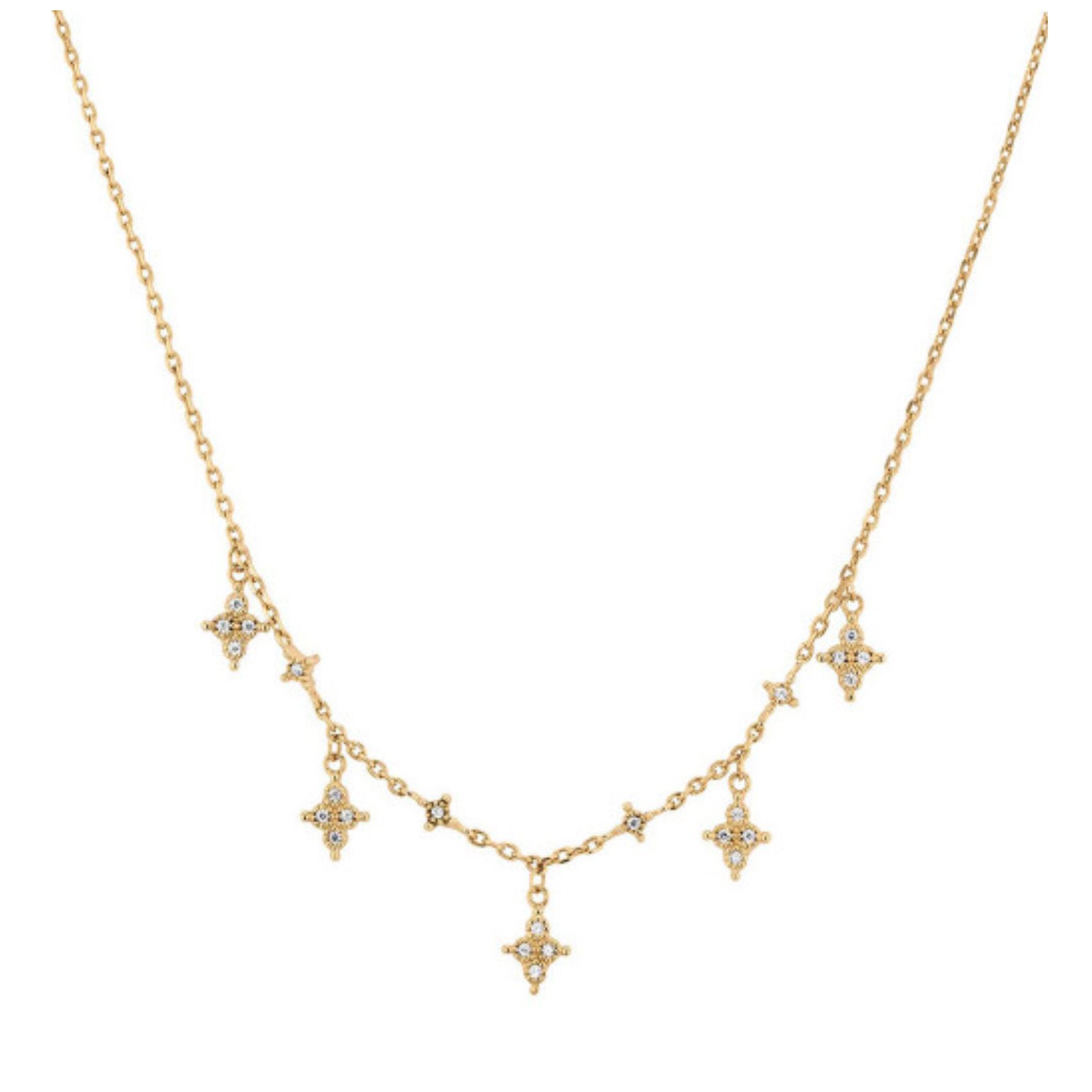 Collier plaqué or pampilles étoiles, zirconiums, Anamila