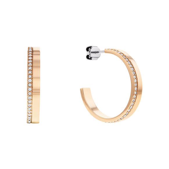 Demi créoles en acier rose gold et cristaux, diamètre 25 mm