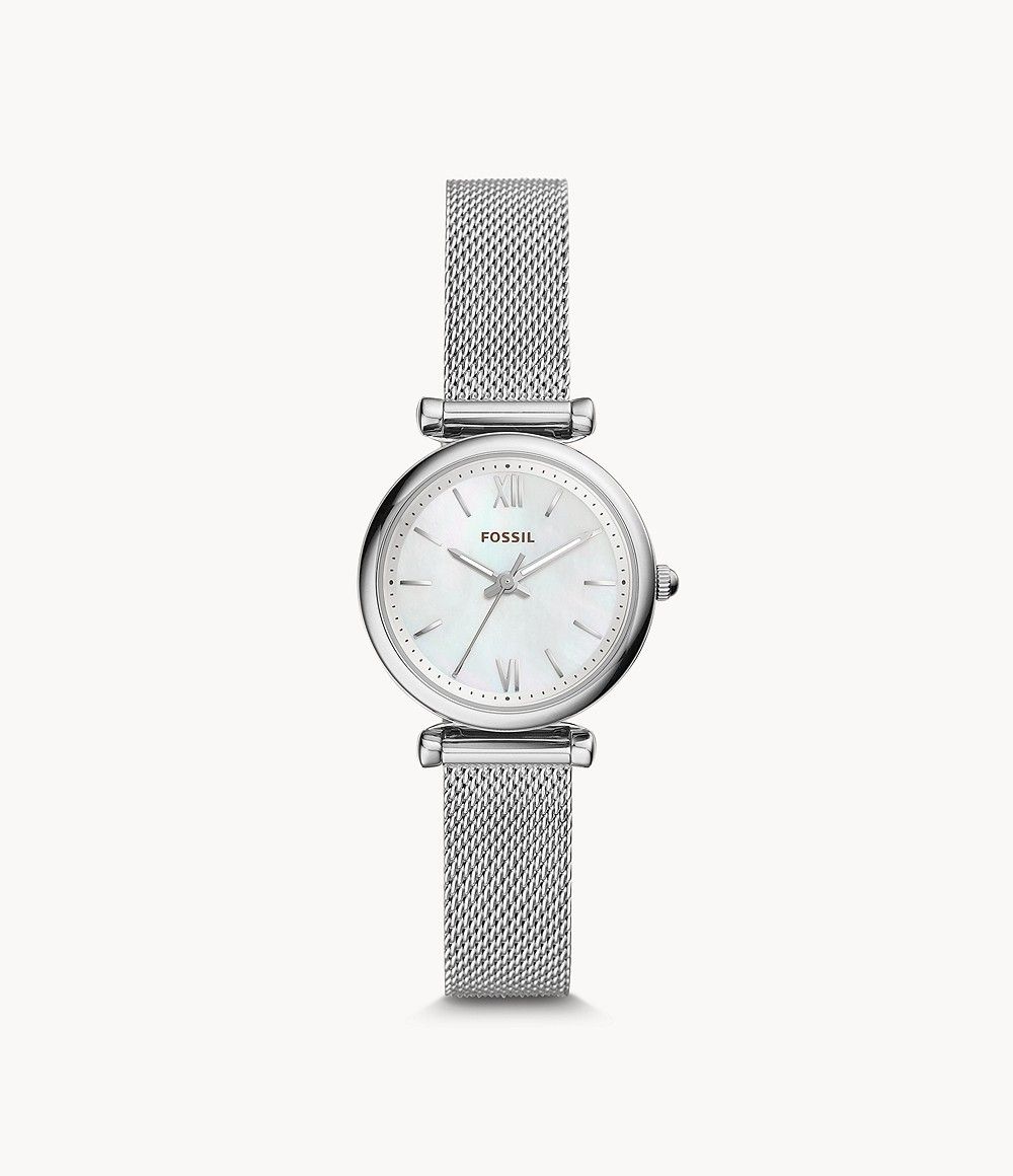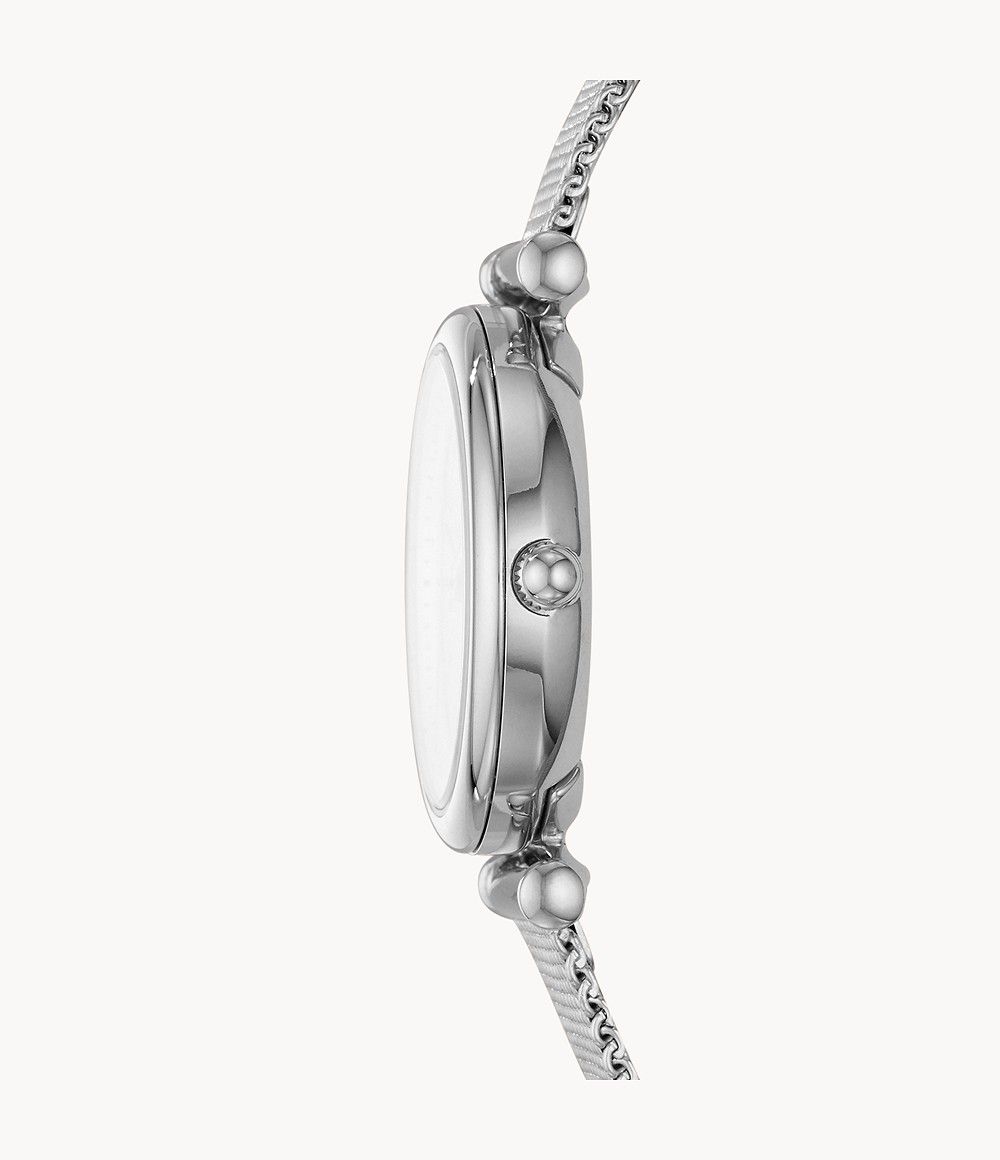 Boitier acier 29 mm, fond de cadran nacré, bracelet maille milanaise