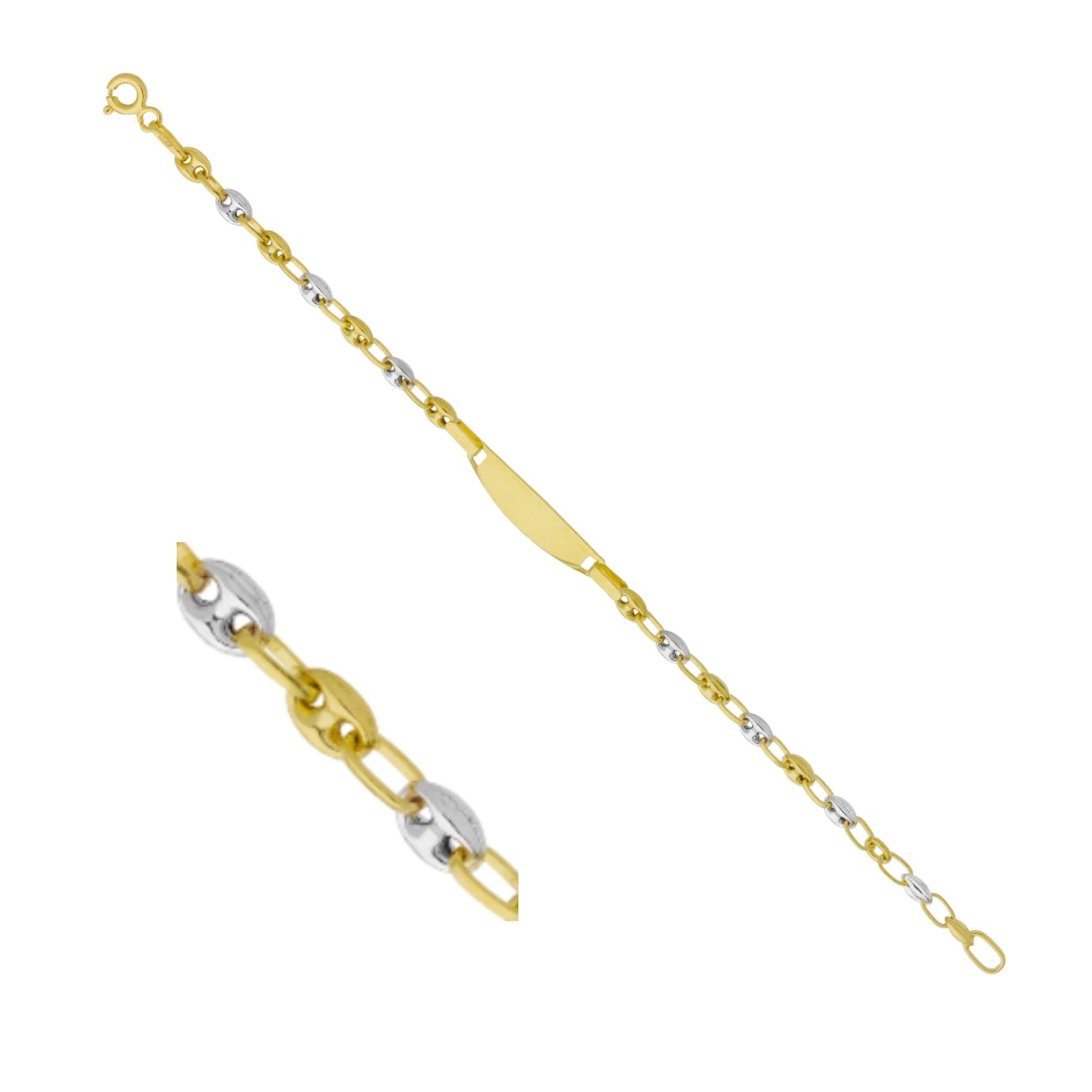 Or jaune 375/000 et rhodiage, Maille grain de Café, Plaque Ovale