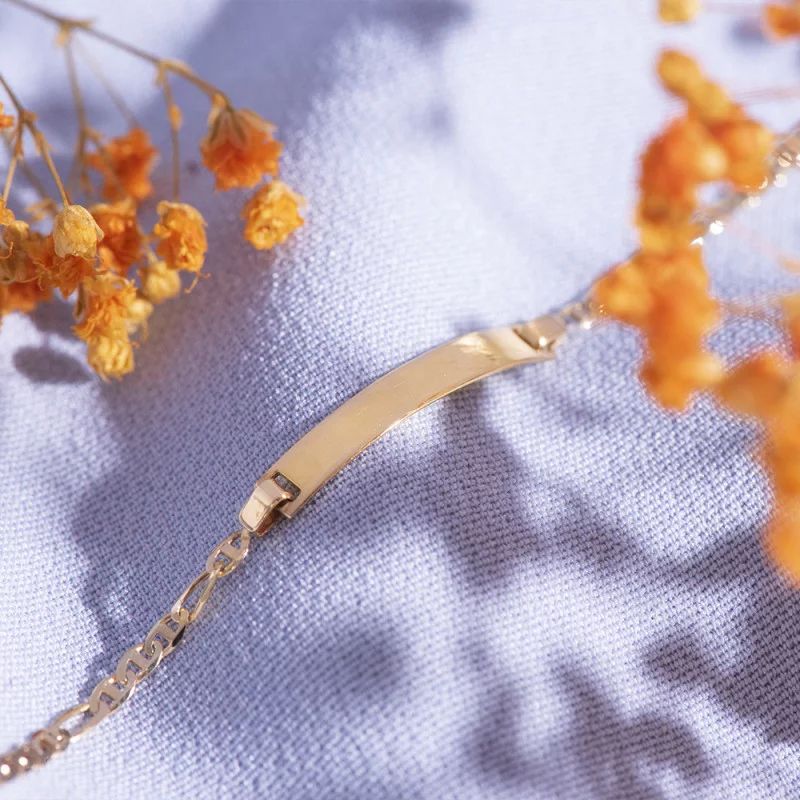 Or jaune 750/000, maille alternée 1/3, 14 cm, + anneau à 12 cm