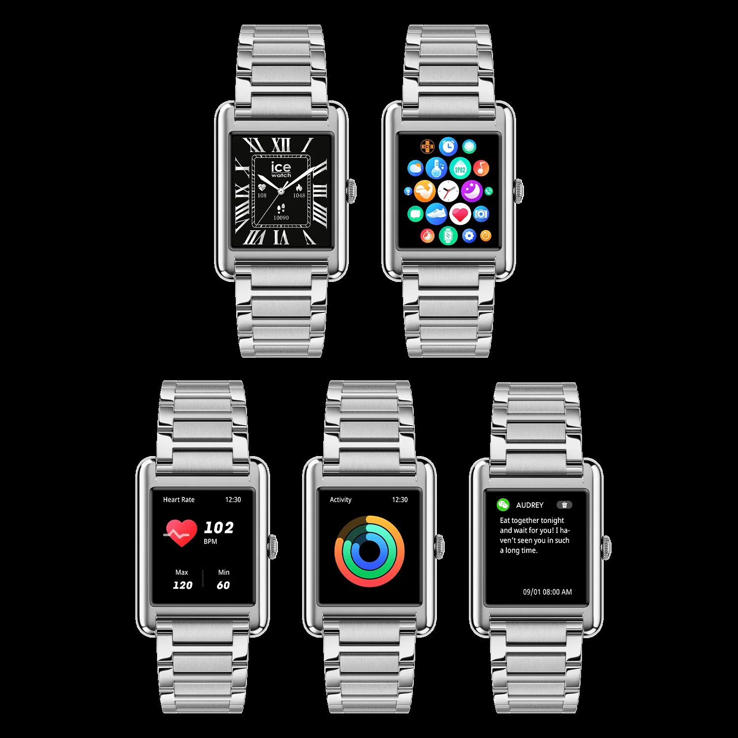 Boitier en alliage de zinc 32 x 42 mm, écran 25 x 28 mm bracelet acier argenté, Etanche 5 ATM